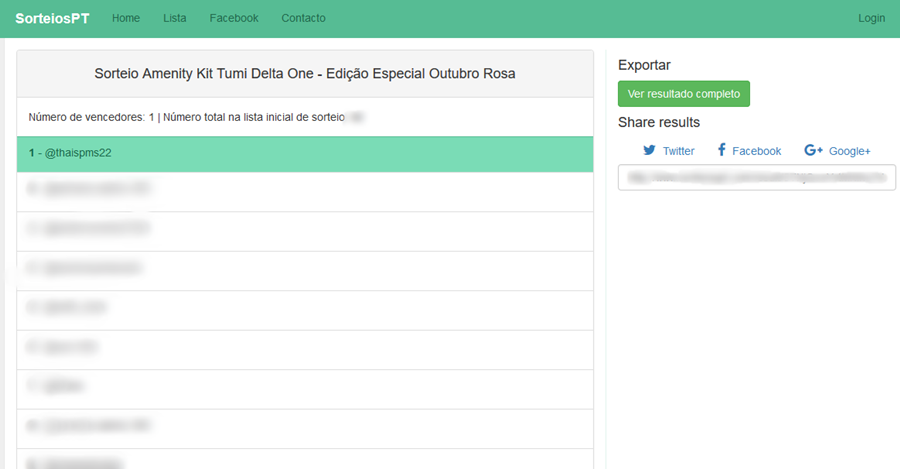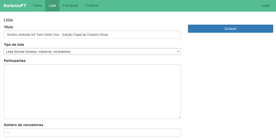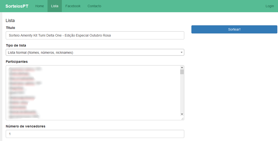 Para realizar o sorteio, utilizamos o site SorteiosPT.