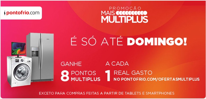 Ganhe 8 pontos Multiplus a cada R$ 1,00 em compras no Pontofrio.com. Condição válida apenas para quem efetuar a compra através desse email ou pelo link: www.pontofrio.com/ofertasmultiplus até às 23h59 de 31/08/2014. A bonificação de pontos varia de acordo com o preço do produto no momento da compra.