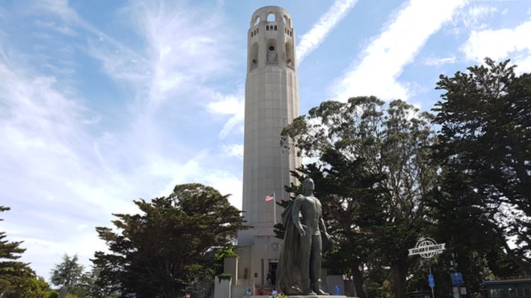 Fizemos uma parada na Coit Tower, de onde é possível ter uma vista linda de toda a cidade e da baía.